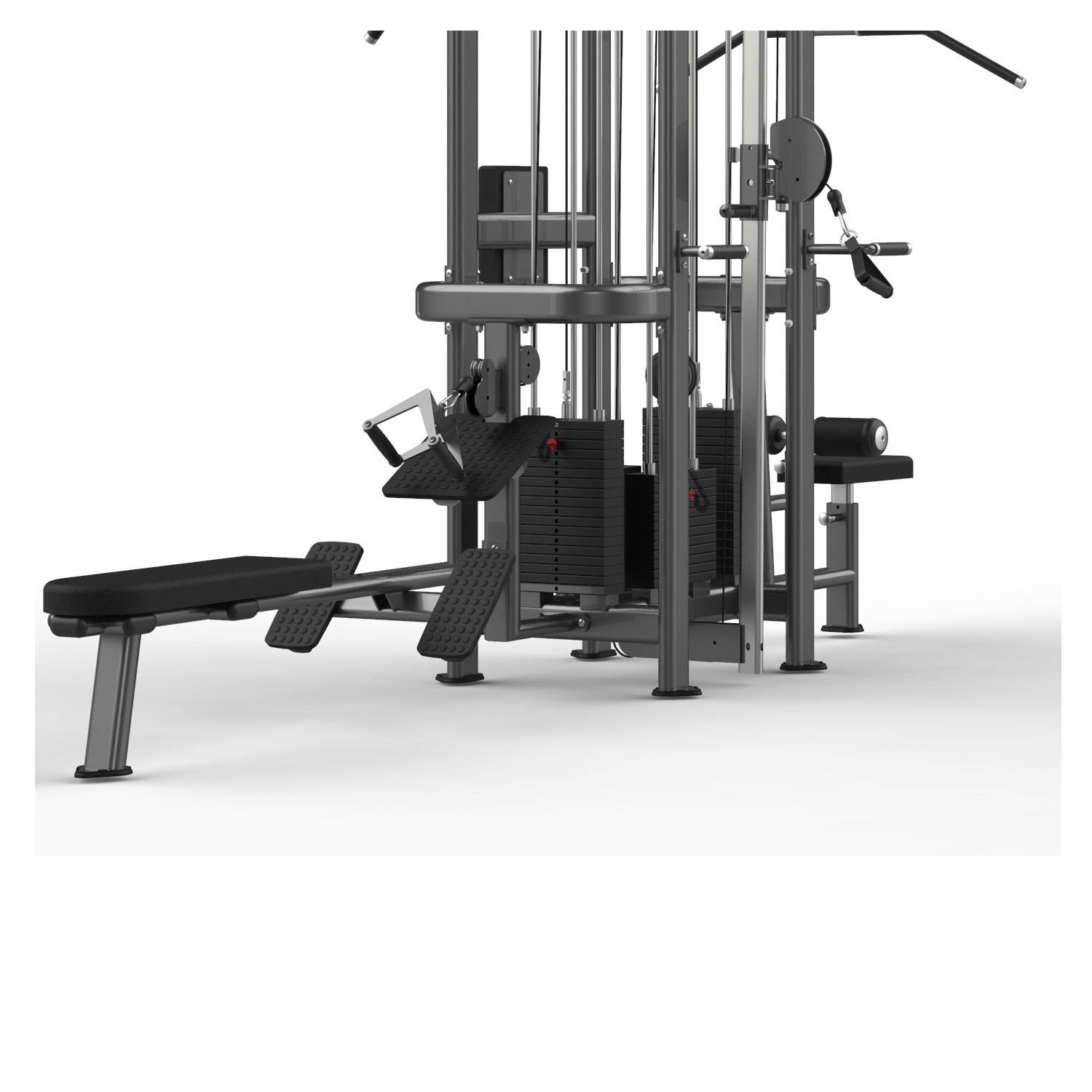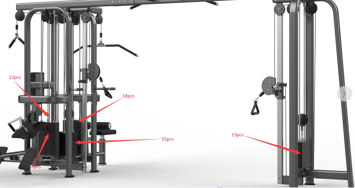Model FM-1006 (Multi-Jungle 5-Stack) to zaawansowana wieża treningowa, oferująca aż pięć niezależnych stanowisk z własnymi stosami obciążeń. Zaprojektowana, aby sprostać najwyższemu natężeniu ruchu w klubie, pozwala na jednoczesny trening pięciu osób bez wzajemnego przeszkadzania sobie. Łączny stos o wadze ponad 515 kg gwarantuje, że każdy użytkownik znajdzie odpowiedni dla siebie opór, od izolacji tricepsa po ciężkie wiosłowanie.