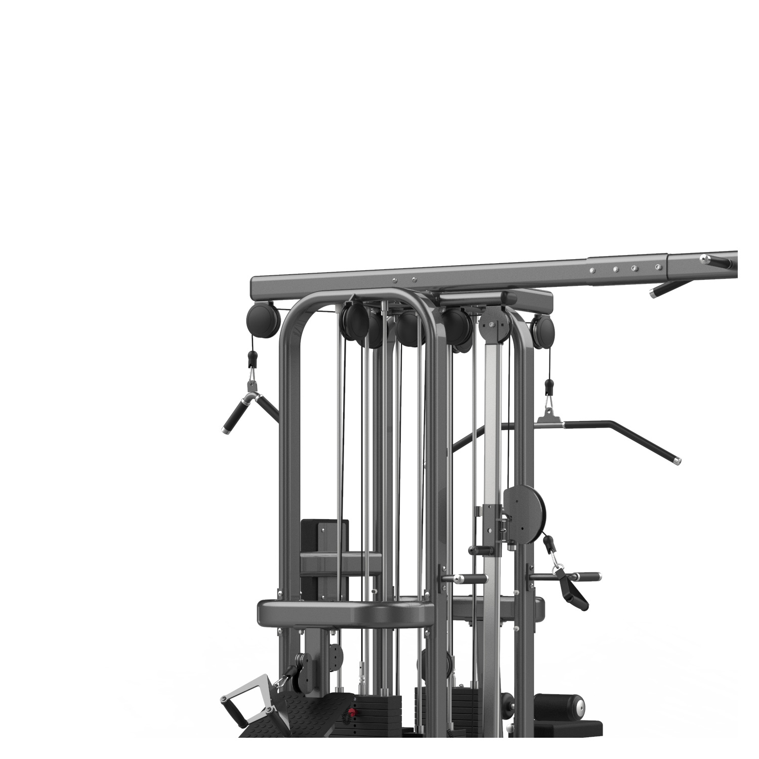 Podwójny Wyciąg Regulowany (2x Adjustable Pulley): Dwa stanowiska z płynną regulacją wysokości, które mogą pracować jako brama Crossover lub dwie osobne stacje funkcjonalne.