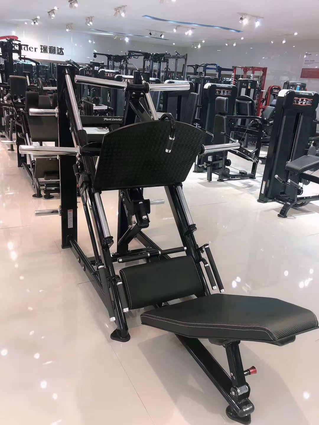 Model Realleader FM-1024 to maszyna, bez której trudno wyobrazić sobie „Leg Day”. Ta Suwnica 45 stopni została stworzona do najcięższych zadań. Pozwala na bezpieczne budowanie masy i siły mięśni czworogłowych, dwugłowych oraz pośladków, zdejmując jednocześnie obciążenie z kręgosłupa (w porównaniu do przysiadów ze sztangą).