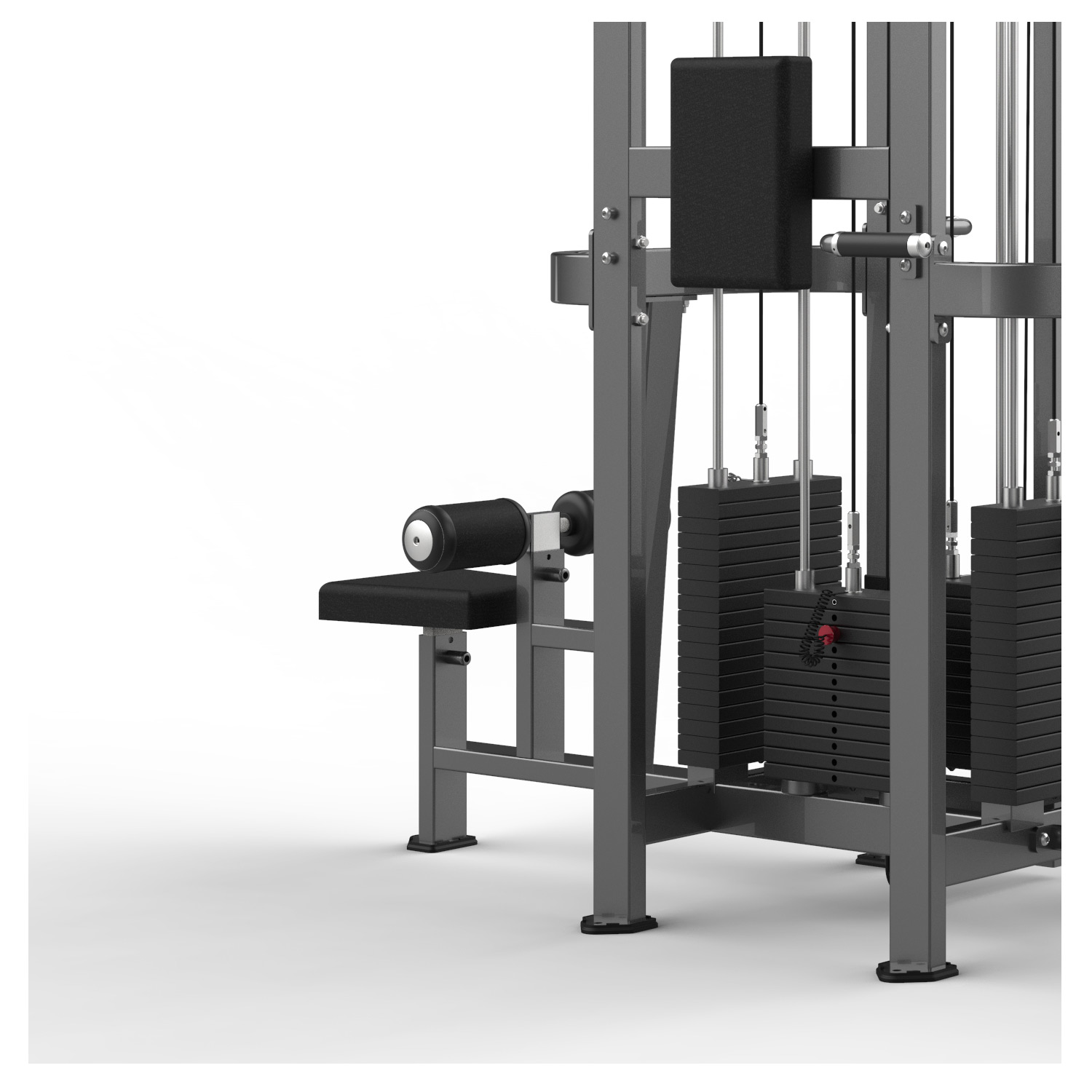 Mimo wspólnej ramy, każde stanowisko posiada własny stos obciążeń. Cztery osoby mogą trenować w tym samym czasie z pełnym komfortem i bezpieczeństwem. Solidna konstrukcja ramy (charakterystyczna dla serii FM-2000) eliminuje drgania i zapewnia stabilność nawet przy maksymalnym obłożeniu maszyny.
