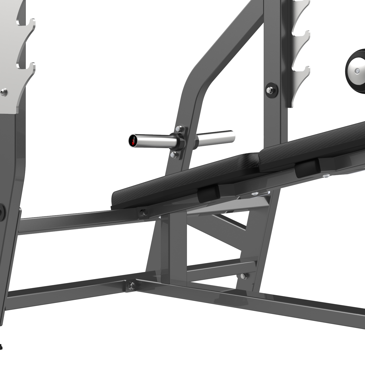 Model Realleader FW-2003 dopełnia strefę wolnych ciężarów. Wiele osób pomija skos ujemny, co jest błędem – to pozycja, w której biomechanicznie jesteśmy w stanie wygenerować ogromną siłę, często większą niż na ławce płaskiej, przy jednoczesnym mniejszym obciążeniu stawów barkowych.