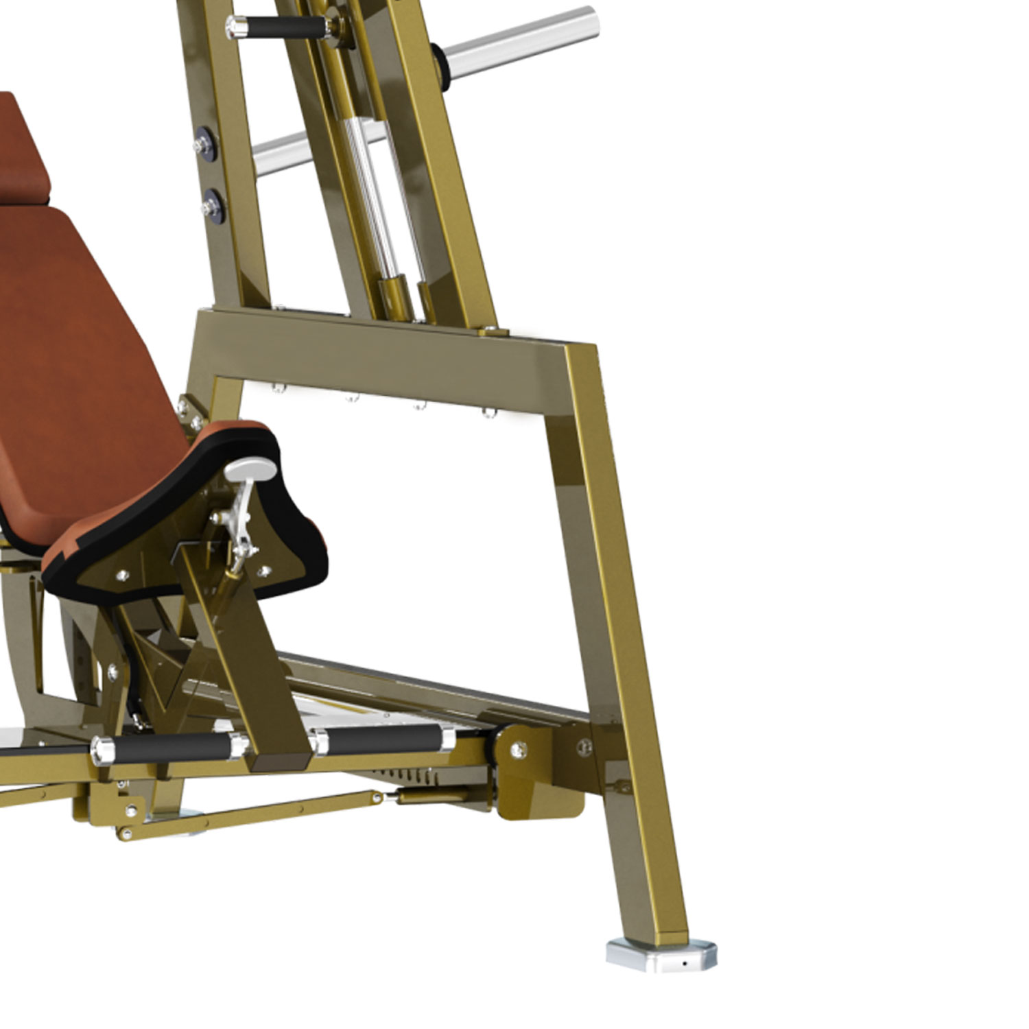 Model LD-1008 (Bench Smith Machine) to profesjonalna suwnica Smitha, która stanowi pomost między wolnymi ciężarami a maszynami izolowanymi. Gryf porusza się po idealnie pionowych (lub lekko nachylonych – zależnie od wersji) prowadnicach wyposażonych w łożyska liniowe, co zapewnia nieskazitelną płynność ruchu bez tarcia. To najbezpieczniejsze miejsce do bicia rekordów w wyciskaniu czy przysiadach bez udziału asekuranta.