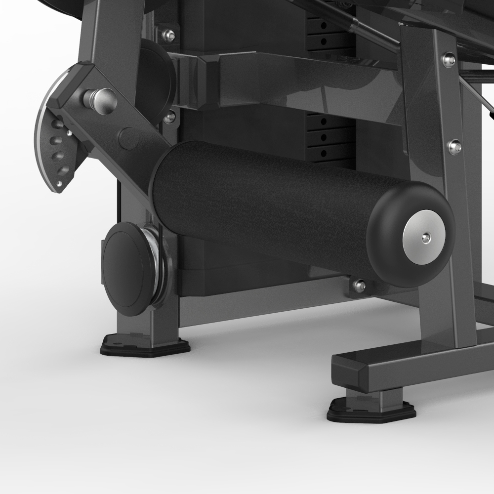 Oś obrotu maszyny została zaprojektowana tak, aby pokrywała się z naturalną osią pracy kolana. Dzięki temu ruch jest płynny i nie powoduje nieprzyjemnego ścinania w stawie. Mechanizm krzywkowy zapewnia stały opór w całym zakresie ruchu – od pełnego zgięcia aż do maksymalnego wyprostu i dopięcia mięśnia.