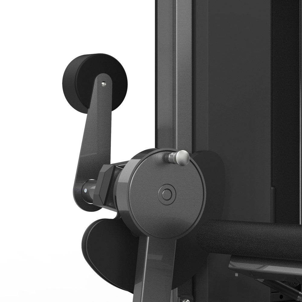 Jako część serii M3, maszyna prezentuje się nowocześnie i elegancko. Wbudowany stos obciążeń jest osłonięty, co wycisza pracę sztabek i zwiększa bezpieczeństwo. Na szczycie obudowy znajduje się praktyczna półka na akcesoria. Solidne uchwyty przy siedzisku pomagają utrzymać stabilną pozycję tułowia podczas pracy z dużym ciężarem.
