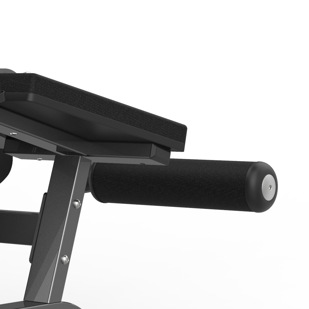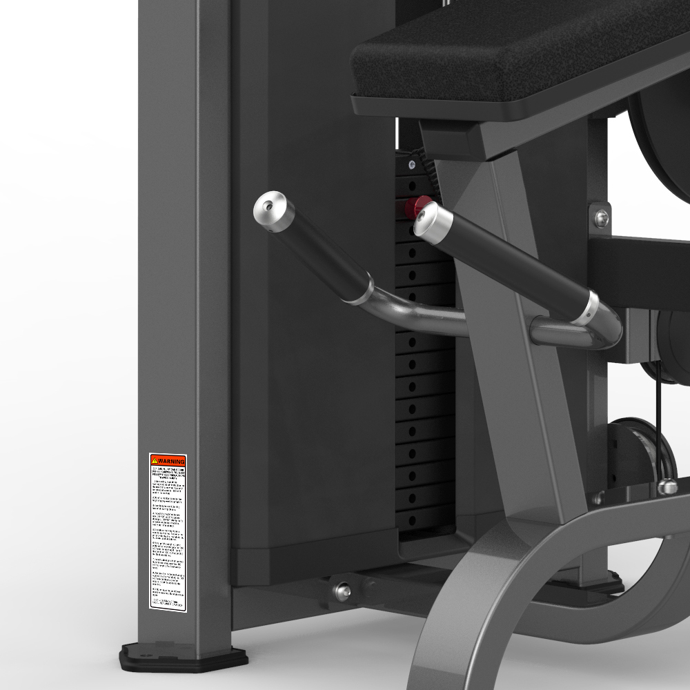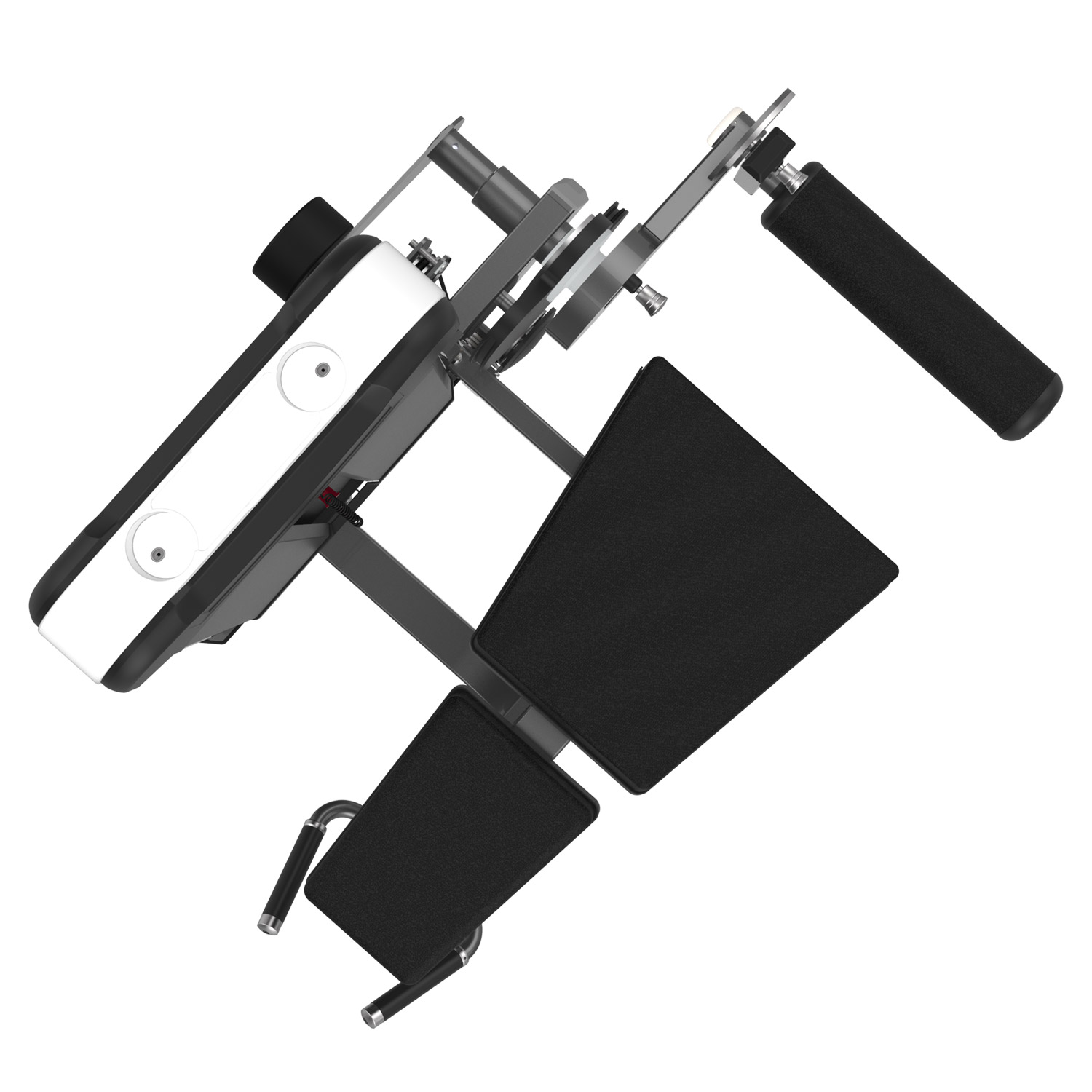 Maszyna wyposażona jest w uchwyty na ręce (przy wezgłowiu), które pomagają ustabilizować tułów przy pracy z dużym ciężarem. Wałek oporowy posiada łatwą regulację, dzięki czemu można go ustawić idealnie na wysokości ścięgna Achillesa, niezależnie od wzrostu ćwiczącego. Miękka tapicerka Premium zapewnia komfort klatce piersiowej podczas serii.