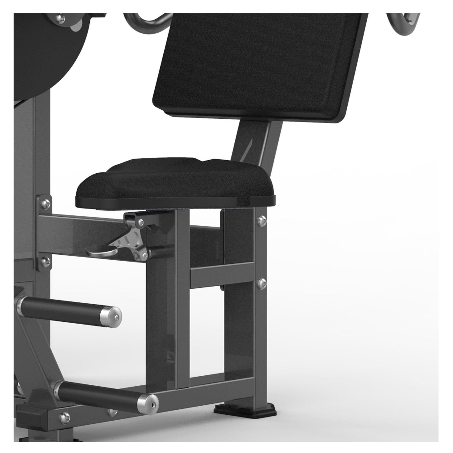 Model M3-1008 (Abdominal Crunch) to profesjonalne stanowisko do izolowanego treningu mięśni brzucha. Specjalna konstrukcja wymusza ruch „zwijania” tułowia, co maksymalnie angażuje mięśnie proste, wyłączając jednocześnie z pracy zginacze bioder. Wygodne siedzisko i oparcie chronią odcinek lędźwiowy kręgosłupa.