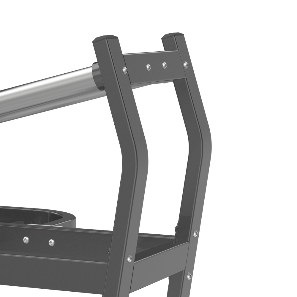 Maszyna wyposażona jest w powiększoną platformę pod stopy, pokrytą antypoślizgowym tworzywem lub ryflowaną stalą.