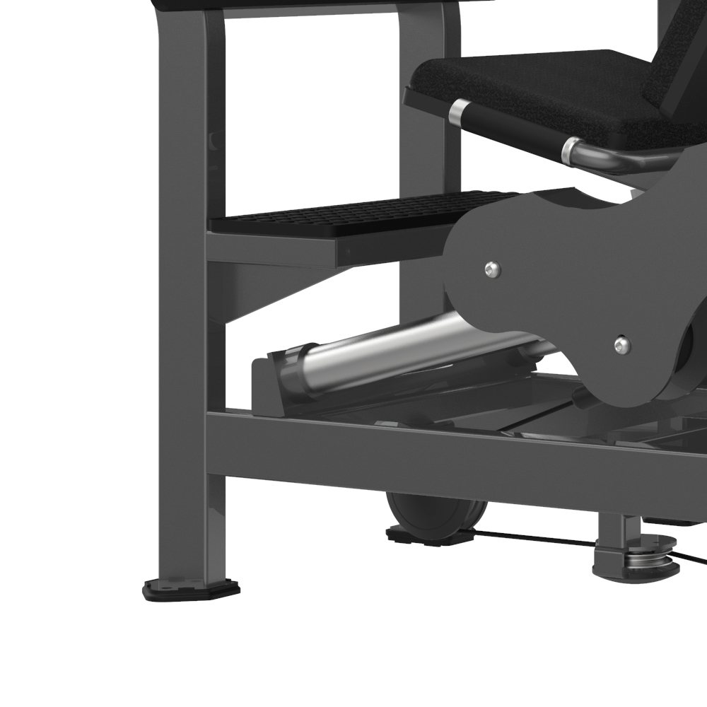 Największą zaletą modelu M3-1009 jest pozycja ćwiczącego. Ergonomiczne siedzisko z regulacją odległości pozwala na przyjęcie pozycji, w której odcinek lędźwiowy jest idealnie podparty. Dlatego nawet przy wypychaniu ogromnych ciężarów, kręgosłup pozostaje bezpieczny, a cała siła generowana jest z bioder i nóg.