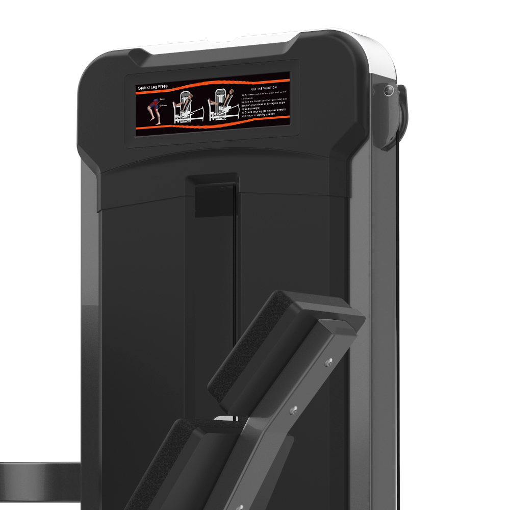 Model M3-1009 (Seated Leg Press) to profesjonalna suwnica pozioma ze stosem. Umożliwia trening z dużym obciążeniem przy zachowaniu pełnej stabilizacji odcinka lędźwiowego. Dzięki obszernej platformie pod stopy, użytkownik może zmieniać ustawienie nóg, angażując mocniej mięśnie czworogłowe, dwugłowe lub pośladki.