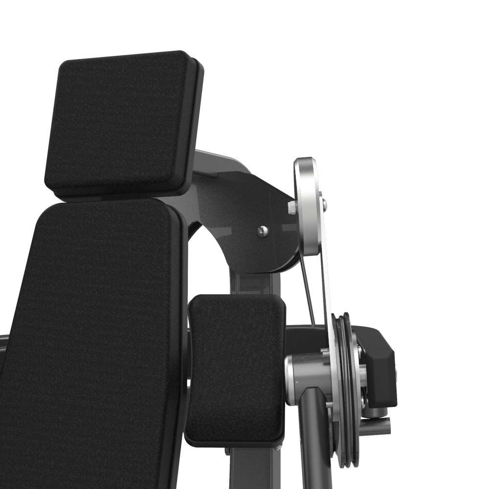 Model M3-1010 (Biceps Curl) to profesjonalne stanowisko do izolowanego treningu mięśni dwugłowych ramienia. Konstrukcja oparta na modlitewniku stabilizuje łokcie, eliminując „zarzucanie” tułowiem. Dzięki mechanizmowi krzywkowemu, maszyna utrzymuje stały opór w pełnym zakresie ruchu, co przyspiesza budowę masy mięśniowej.