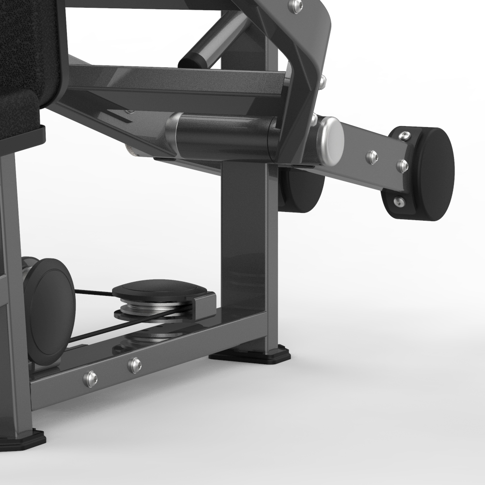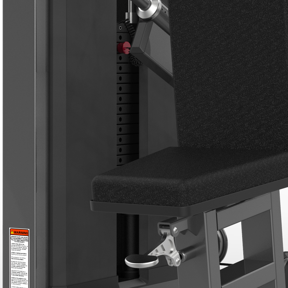 Model M3-1011 (Triceps Extension) to profesjonalne stanowisko do treningu mięśni trójgłowych ramienia. Dzięki pozycji siedzącej i oparciu pod ramiona (modlitewnik), maszyna eliminuje pracę barków i klatki piersiowej, zmuszając do wysiłku wyłącznie tricepsy. Precyzyjny stos obciążeń zapewnia stały opór w każdej fazie ruchu.