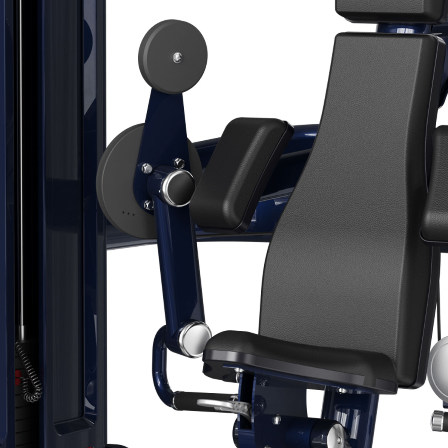 Maszyna działa w systemie Iso-Lateral (niezależne ramiona). To kluczowa funkcja dla kulturystów, ponieważ pozwala:
