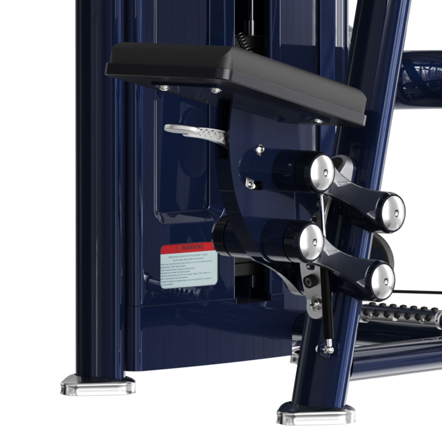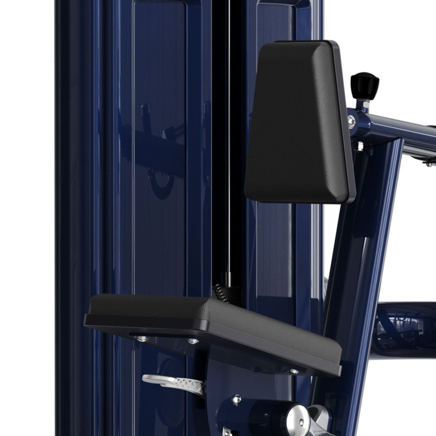 Jakość wykonania stoi na najwyższym poziomie. Pełna osłona stosu zintegrowana z uchwytem na bidon i telefon, ergonomiczne siedzisko z regulacją wspomaganą siłownikiem oraz nowoczesny, matowy design sprawiają, że maszyna M7Pro-1009 jest wizytówką każdej strefy wolnych ciężarów i maszyn izolowanych.