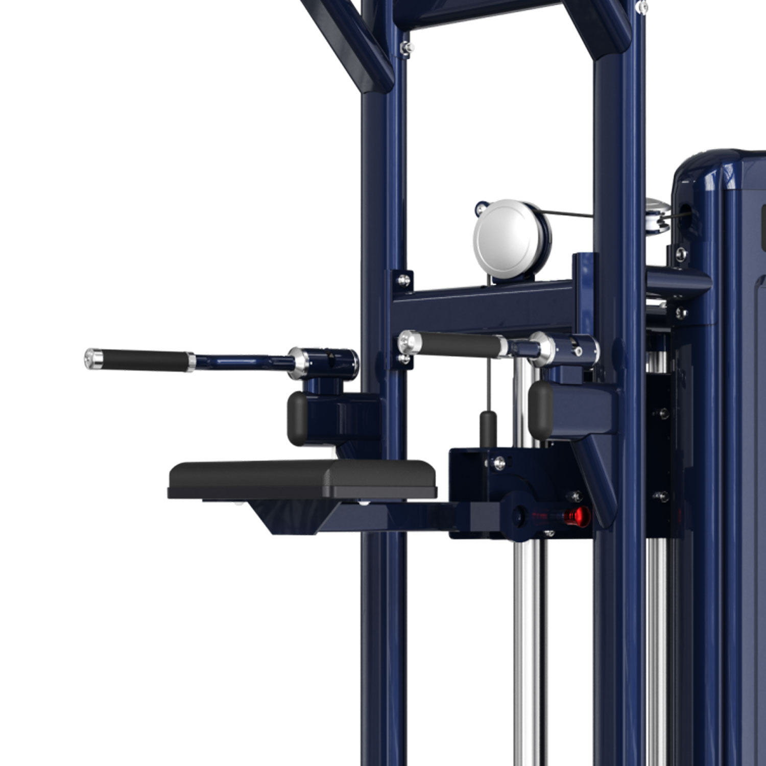Platforma pod kolana jest składana. Zaawansowani użytkownicy mogą ją jednym ruchem schować, zamieniając maszynę w standardowy drążek i poręcze do treningu z pełnym ciężarem ciała (lub z dodatkowym obciążeniem na pasie).
