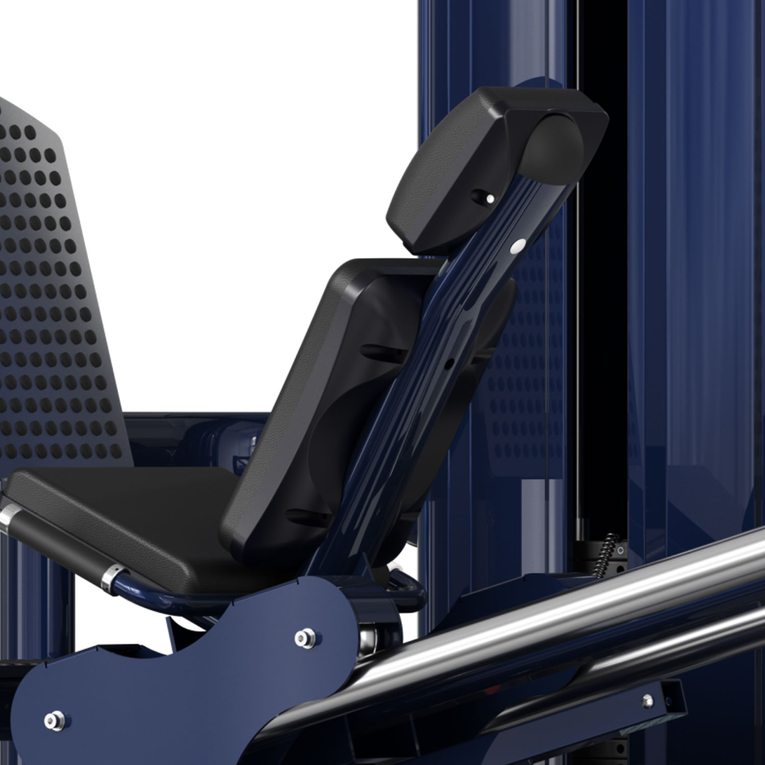 Pozycja ciała: Wyprofilowane oparcie stabilizuje miednicę, zapobiegając jej podwijaniu („butt wink”) w dolnej fazie ruchu.