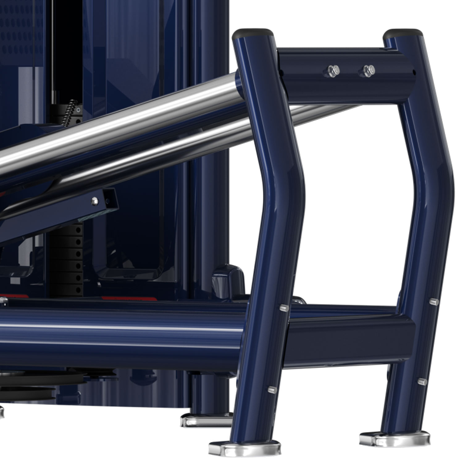 Model M7Pro-2005 (Seated Leg Press) to potężna maszyna stosowa imitująca ruch przysiadu w odciążeniu kręgosłupa. Użytkownik wypycha ciało (lub platformę, w zależności od mechaniki) w pozycji poziomej, co chroni odcinek lędźwiowy. Obszerna platforma pod stopy pozwala na różnorodny rozstaw nóg, angażując czworogłowe, dwugłowe lub pośladki. To obowiązkowy element każdej strefy nóg, zamknięty w eleganckiej obudowie serii M7 Pro.