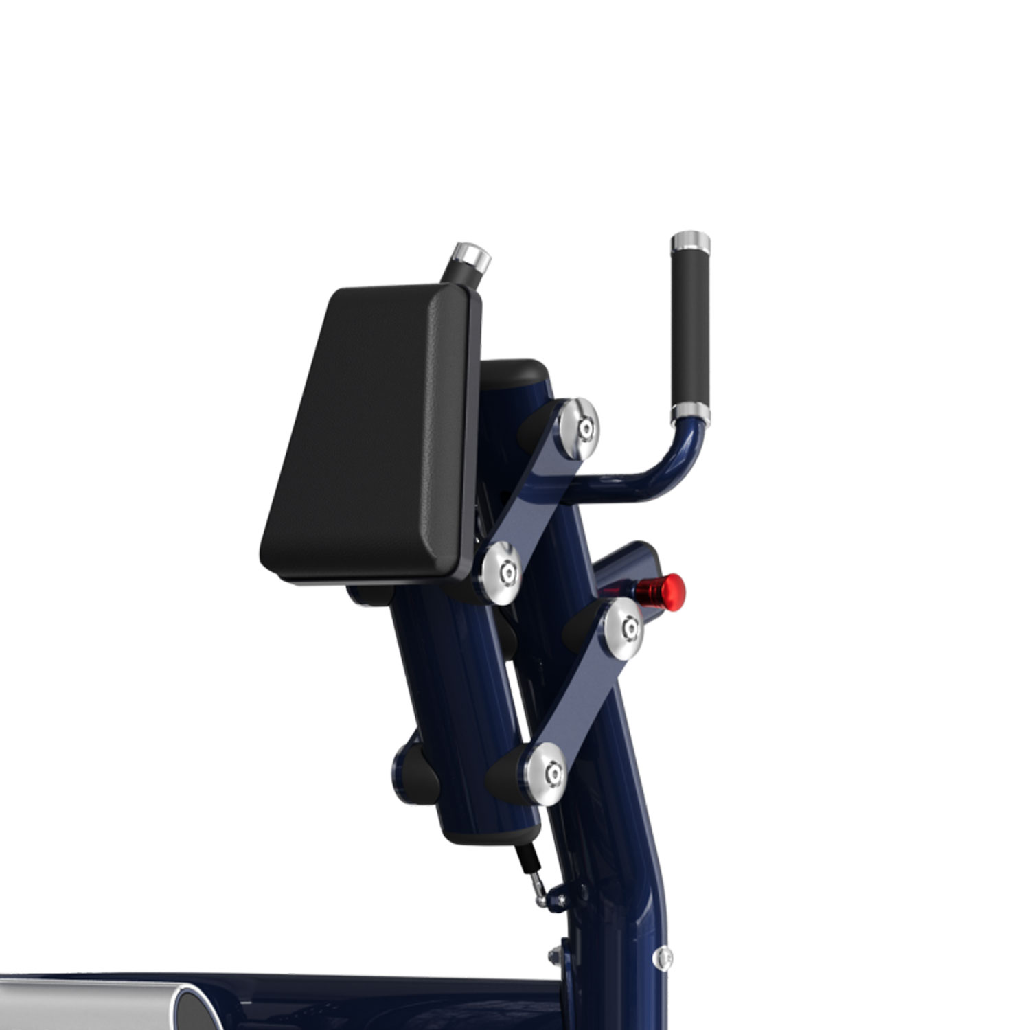Model M7Pro-2008 (Glute Machine) to specjalistyczne urządzenie z serii Premium, zaprojektowane do izolowanego treningu mięśnia pośladkowego wielkiego. Maszyna odwzorowuje ruch „kopnięcia w tył” (Kickback) w sposób kontrolowany i bezpieczny dla kręgosłupa. Dzięki wygodnemu oparciu na klatkę piersiową i regulowanej platformie, użytkownik może skupić się wyłącznie na pracy biodra, eliminując zbędne napięcie w odcinku lędźwiowym.