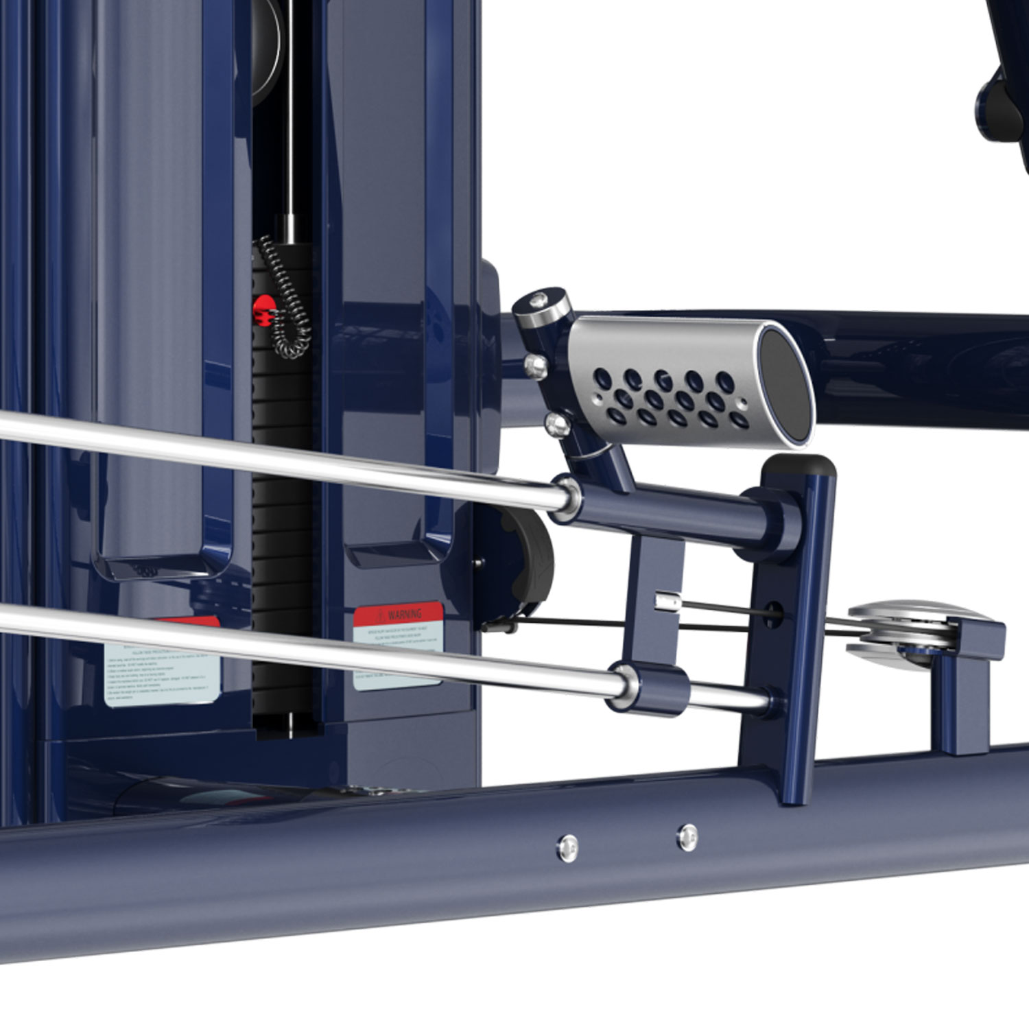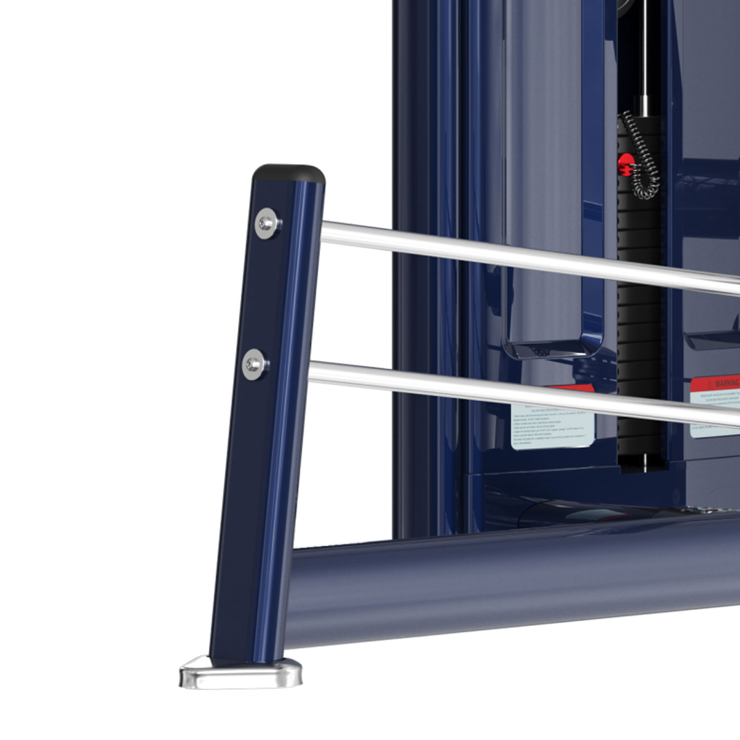 Maszyna prezentuje się niezwykle profesjonalnie. Pełna osłona stosu (Full Shroud) zapewnia bezpieczeństwo i estetykę, a ergonomiczne uchwyty pozwalają na pewny chwyt podczas bicia rekordów siłowych. Czarny, matowy design serii M7 Pro idealnie wpisuje się w standardy luksusowych klubów fitness.